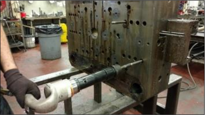 1. The application below required twelve to thirteen blows to drive a one-inch pin. This took about fifteen seconds. The solution from Honsa drives the pin in three seconds; 1/5th the time.